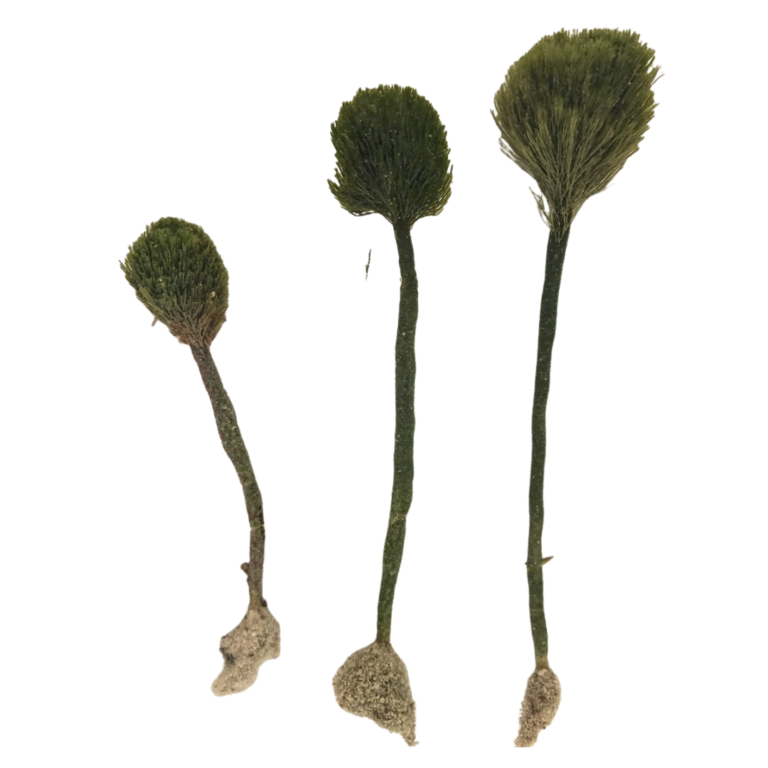 These easy to care for marine plants grow in sandy substrates and have excellent filtration capacity for nitrates and phosphates. The plant resembles a green Pom Pom. They do require a nice amount of light for healthy growth and will benefit from the addition of calcium and iron supplements. Herbivorous fish will not consume single stem plants, however there are some sea urchins may actually feed on these plants.