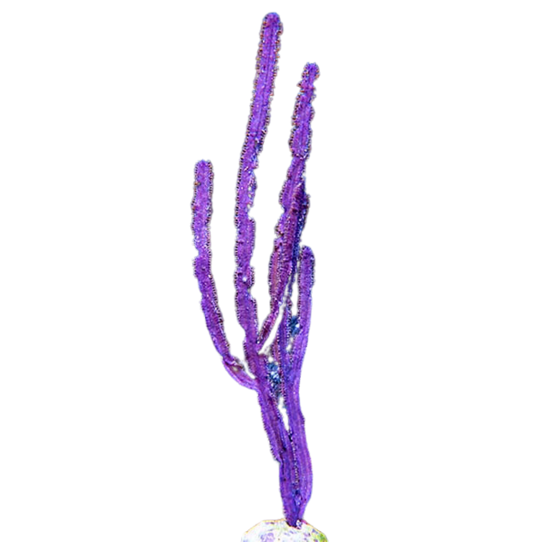 This particular coral is a very deep purple gorgonian that adds great color to any reef aquarium. If you love the color purple, be sure to check out our other purple gorgonians for sale: Purple Bush and Purple Frilly. Both are also very competitively priced.